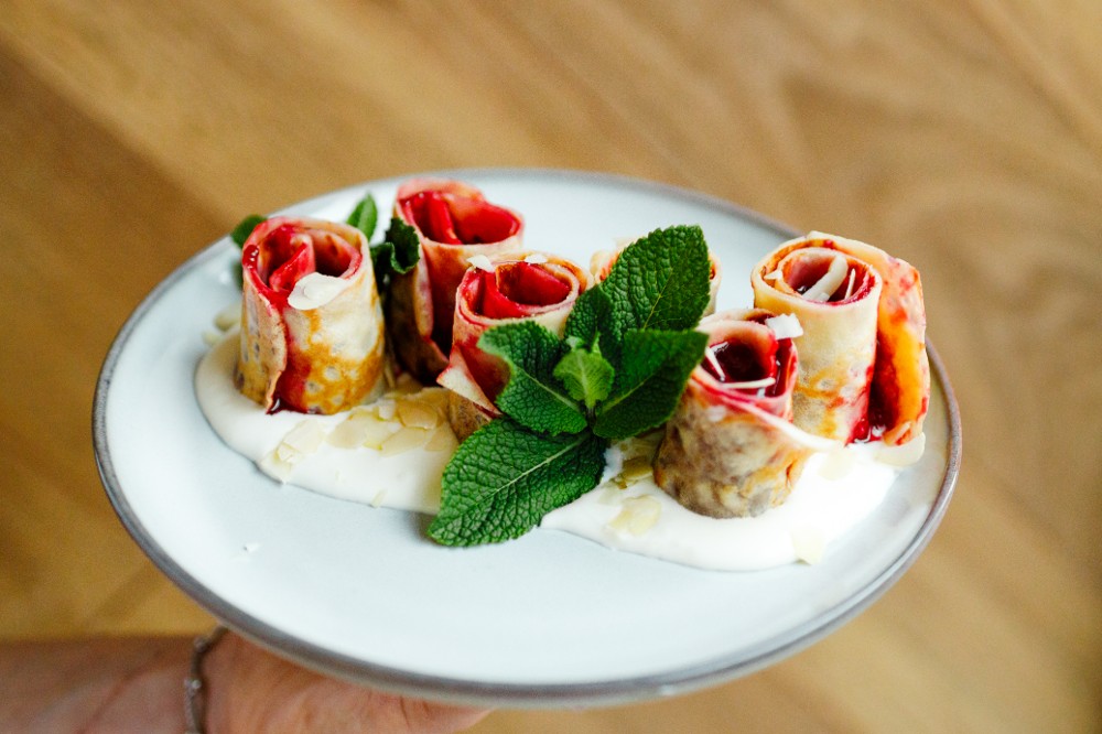 Млинці з кремом маскарпоне і вишнями