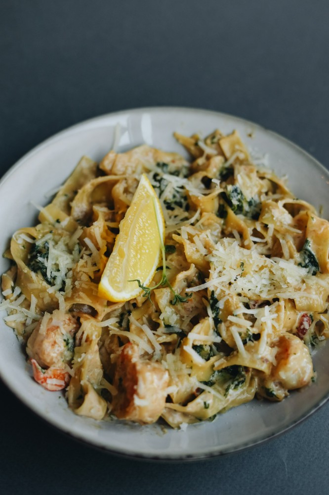 Фетучіні з креветками та шпинатом