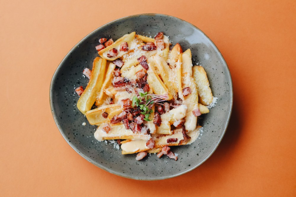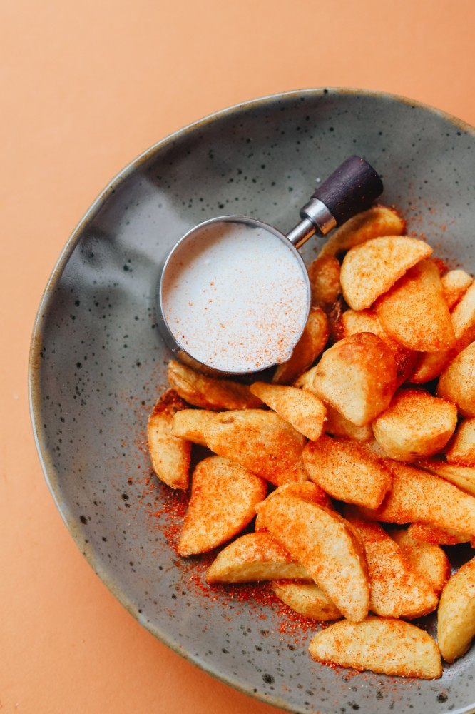 Картопляні діпи під сирним соусом з беконом