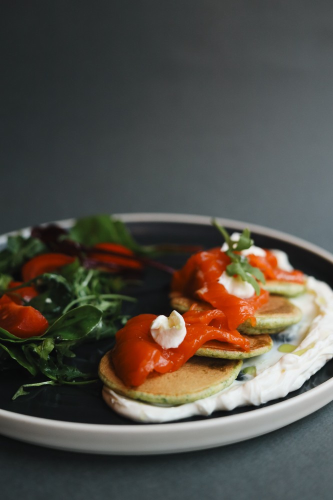 Шпинатні панкейки з лососем