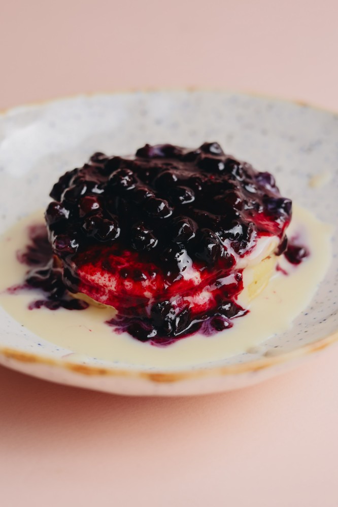 Панкейки з кокосовим соусом та смородиною