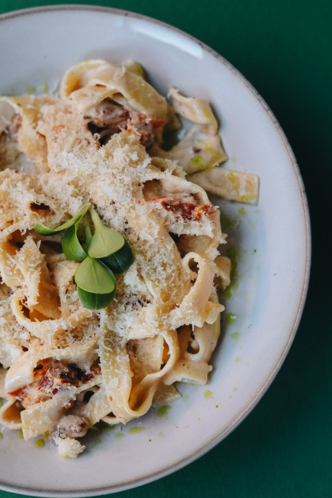 Фетучіні з лососем та в'яленими томатами