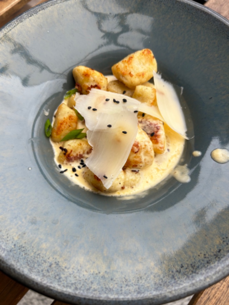 Смажені ньокі під сирним соусом