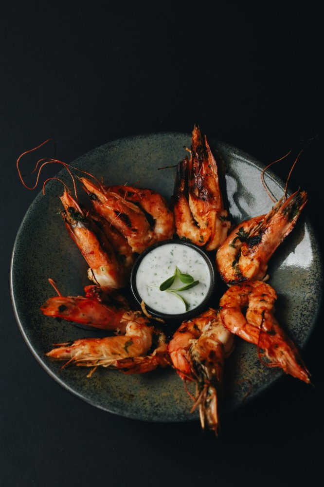 Королівські тигрові креветки з соусом дзадзикі